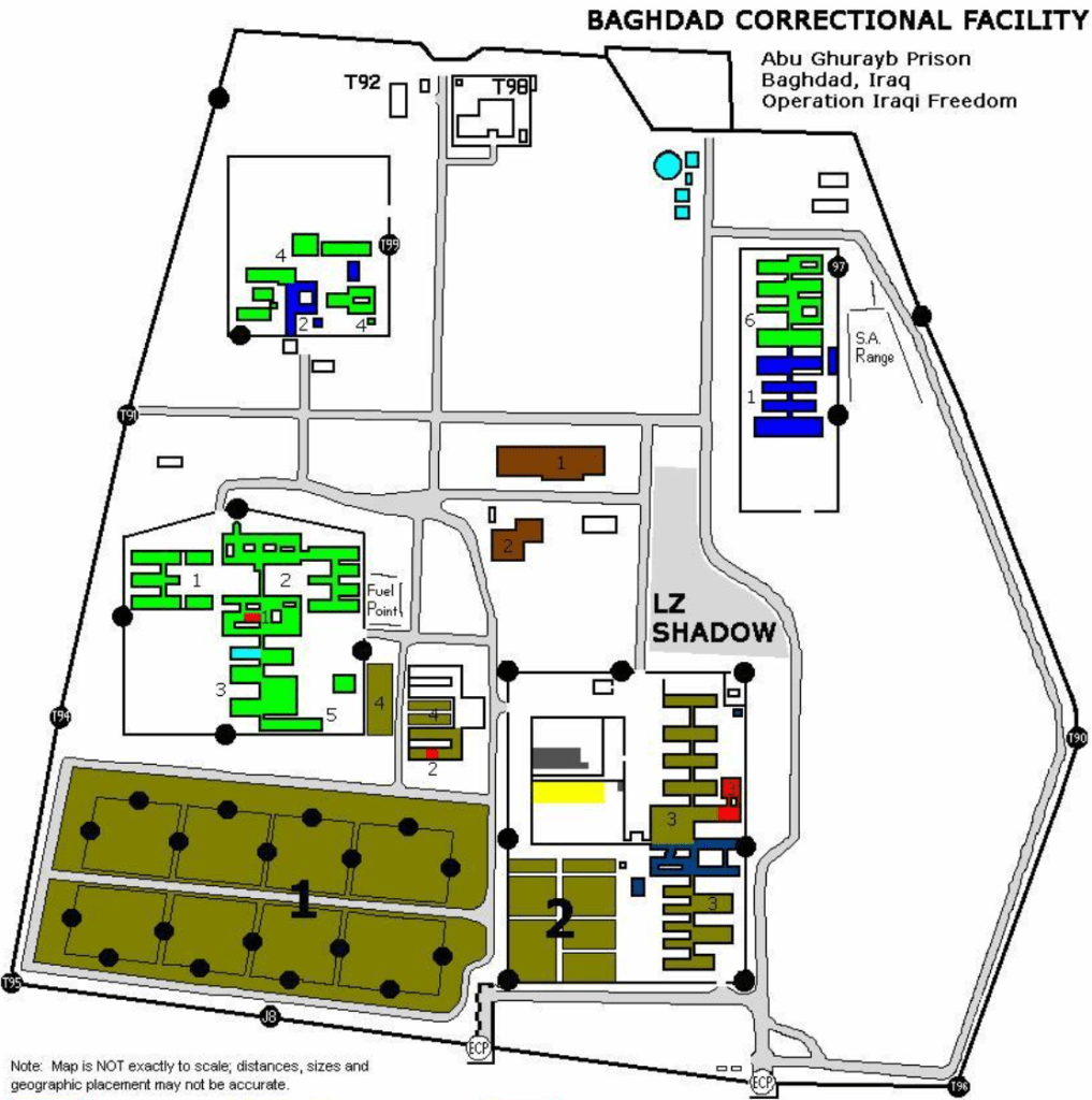 Nach Beginn der US-geführten Besetzung des Irak im Jahr 2003 fiel die Hauptstadt Bagdad rasch. Inmitten des folgenden Chaos zerstörten irakische Bürger Abu Ghuraib. Doch nur wenige Monate später renovierte und eröffnete die amerikanische Besatzungsmacht das Gefängnis erneut.2 Brigadier General Janis L. Karpinski erklärte damals öffentlich, ein Aufenthalt im Gefängnis käme einer „Urlaubsreise“ gleich – man sei sogar besorgt gewesen, die Insassen würden das Gefängnis gar nicht mehr verlassen wollen.